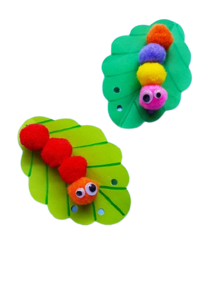 Η κάμπια μας είναι το μωράκι της πεταλούδας και το συναντάμε πάνω σε φύλλα. Ξεκινάει σαν μικρό μαύρο πλασματάκι και στην πορεία μεγαλώνει και γίνεται πράσινη, παχουλή και με πιτσίλες. Ο σκοπός της είναι να φάει όσο περισσότερο μπορεί, ώστε να μπορέσει να μεταμορφωθεί σε πεταλούδα. Ένα ζουζούνι όχι και πολύ αγαπημένο από τους καλλιεργητές, αλλά σίγουρα εντυπωσιακό να το παρατηρήσεις με ένα παιδί! Για αυτή την κατασκευή χρειαζόμαστε χαρτόνι, πομ-πομ, ματάκια και μαρκαδόρο! Οι τρύπες που βλέπουμε πάνω στο φύλλο είναι επειδή η κάμπια μας, λαίμαργη καθώς είναι, έριξε 2-3 δαγκωνίτσες στο πεντανόστιμο και πράσινο φυλλαράκι! Κατασκευές άνοιξη νηπιαγωγείο