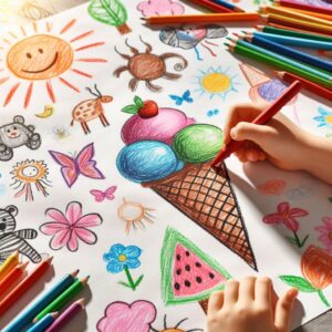 Ξεκινήστε με μια απλή, αλλά πάντα αγαπημένη δραστηριότητα με θεματική το παγωτό: τη ζωγραφική! Δώστε στα παιδιά χρωματιστά μολύβια, κηρομπογιές ή μαρκαδόρους και ζητήστε τους να δημιουργήσουν τα δικά τους παγωτά. Μπορείτε να εκτυπώσετε σκίτσα παγωτών από το διαδίκτυο ή να αφήσετε τα παιδιά να σχεδιάσουν τα δικά τους. Προτείνετε τους να δημιουργήσουν πρωτότυπες γεύσεις και διακοσμήσεις.